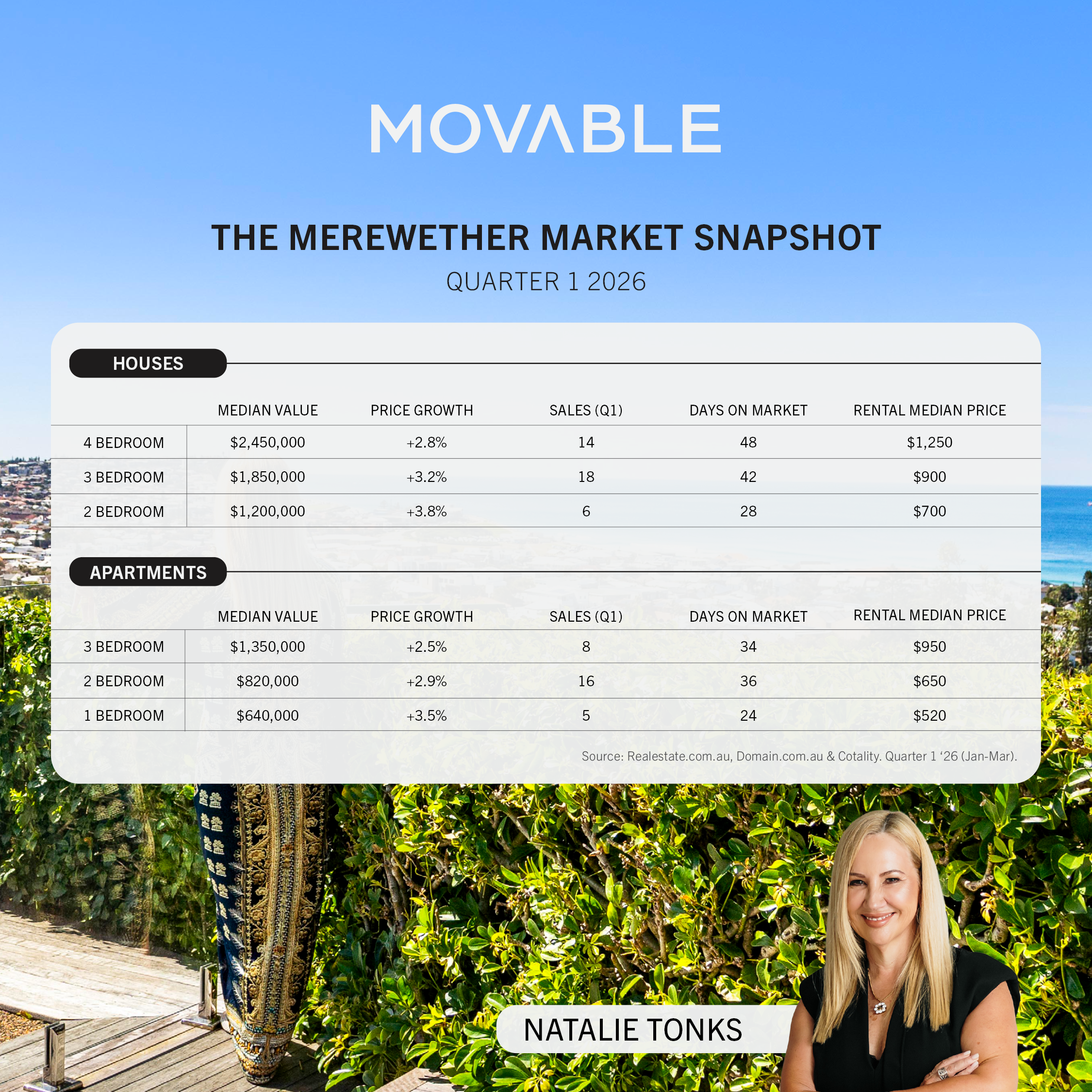 Across Merewether and Newcastle’s coastal suburbs, including Bar Beach, Cooks Hill and Adamstown, the market has remained steady, with strong price points holding through Q1. Family homes continue to perform well, particularly those offering space, lifestyle and proximity to the coast.